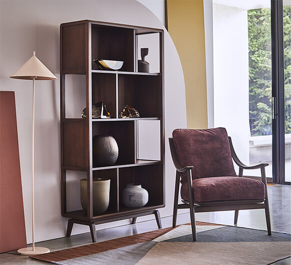 Offset storage options with shelves and compartments, a beautiful feature piece to display stored items in the home. Made in the beautiful dark Tulipwood.